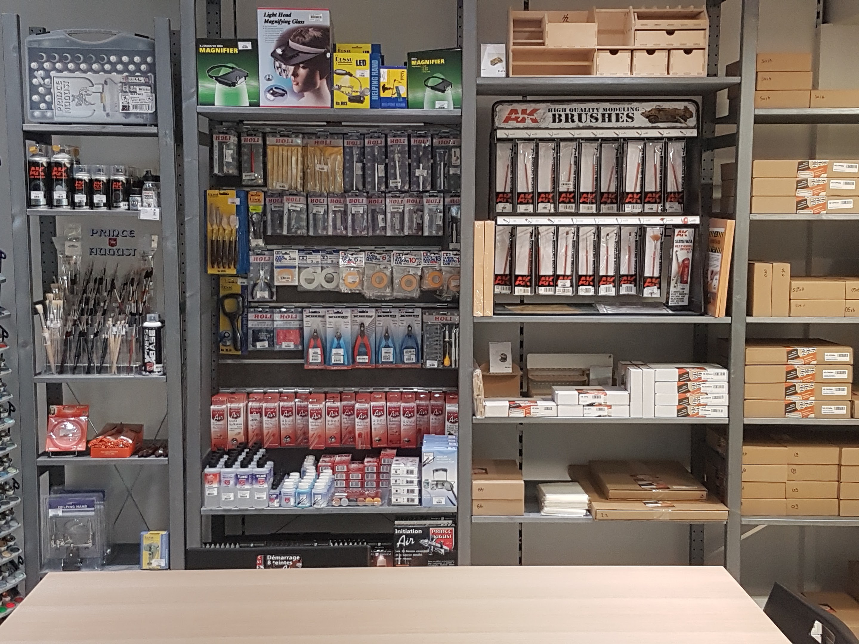 Trés bonne boutique de modélisme et bonne nouvelle pour les colleurs de plastique on y trouve maintenant quelques marques connues: Tamiya, Italeri, AK, outillage, peinture (prince augste air et normal), colle, produit microscale, aéro, pinceaux, pigment, etc... En plus des articles en vente, un sourire vous attend en passant la porte.